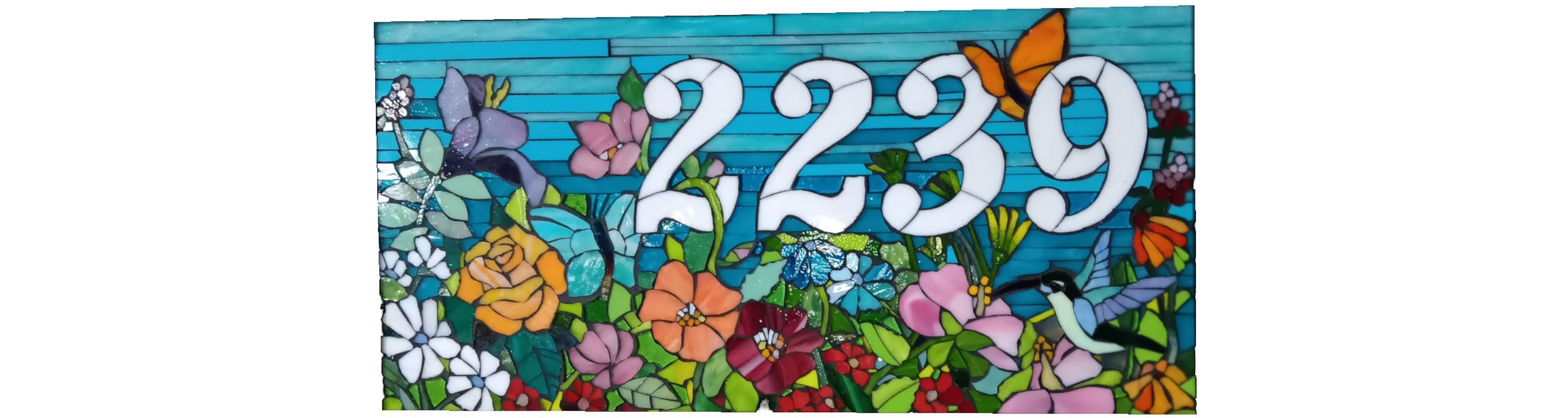 Stained Glass Mosaics specializing in decorative house numbers and custom creations. Custom house numbers and Custom pieces have a wait time of 6 months at the moment. Thanks! Rosemales and Window Sitters are ready to go!