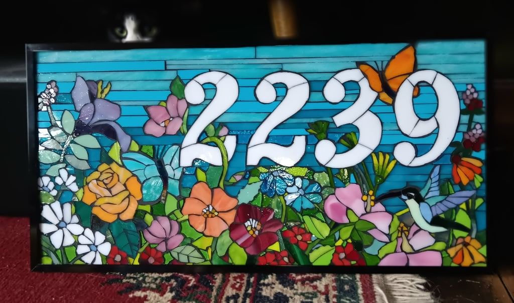 Custom House Number Plaque Stained Glass Mosaic Large Flower Garden
